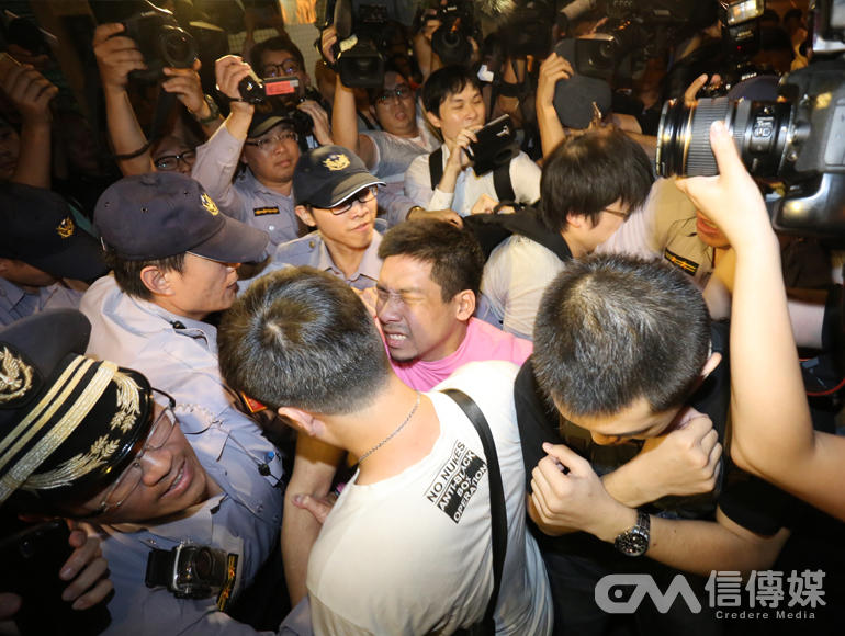 因立法院今早強硬通過勞動基準法修正草案議事錄,社運人士晚間在立法院外抗議,試圖衝進立法院與警方爆發衝突,並在濟南路前企圖用梯子翻牆但被警方阻止。