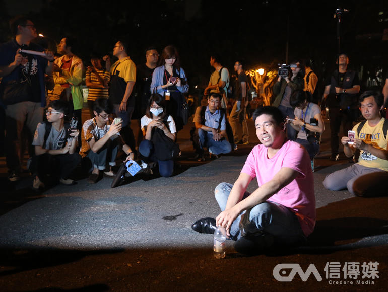 稍晚抗議人士佔據中山南濟南路口造成交通堵塞。
