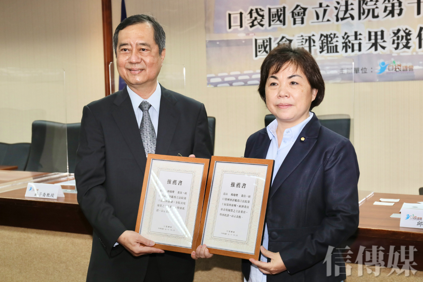 口袋國會今(18)日發布立法院第10屆第4會期國會評鑑結果,其中共有14位被評選為全院表現優良以上立委,國民黨6位、民進黨4位、民眾黨2位及、時代力量籍無黨籍各1位;各委員會評比共有22位立委為優良,國民黨11位、民進黨9位及民眾黨2位。同時獲得全院及委員會表現優良立委共有9位,更以國民黨楊瓊瓔獲得5星跟6星分數最為突出。