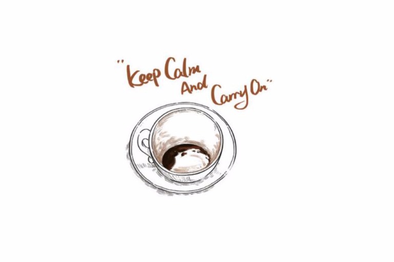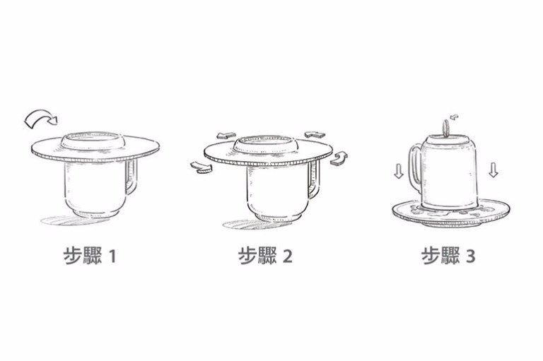 1. 喝完咖啡,留一點咖啡在杯底,然後將盤子蓋在咖啡杯上。