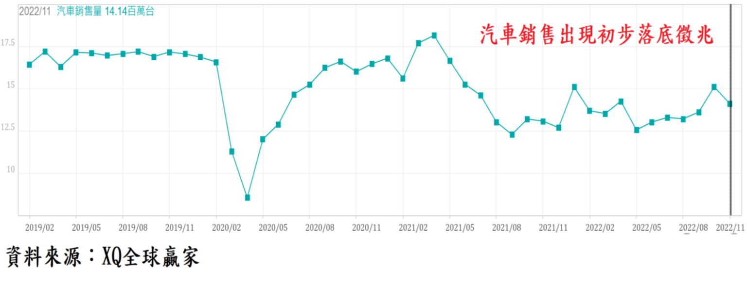 11月新車年率銷售量為1410萬輛,月減6.62%,高於去年同期的1320萬輛,年增7.91%,連續第13月較去年同期負成長後第4個月轉正成長,汽車業景氣出現自谷底盤整階段復甦徵兆,值得後續進一步印證。