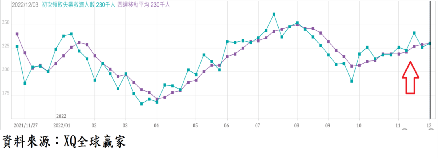 截至12月03日止的美國單周初領失業救濟金人數由前周的22.6萬人,上升至23萬人。初領失業救濟金四周移動平均數23.0萬人較前周的22.9萬人微幅上升,連續4周上升,呈現溫和上升狀態。