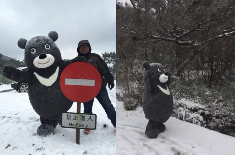 105年1月,正逢罕見的陽明山下雪,印象中那是個快樂星期五,氣象新聞播報預測周末山區會降雪、提醒民眾上山賞雪要做好應變措施(車輪掛雪鏈、保暖),團員想利用這次民眾聚集的機會加強熊讚的曝光。