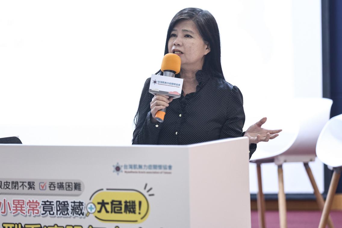 台灣肌無力症關懷協會理事長梁采葳也強調,重症肌無力雖無法根治,但透過合適藥物穩定控制,病友仍可維持正常生活。她鼓勵病友積極治療、加入團體汲取支持,也期盼政府能真正看見「未被照顧的少數人」,將難治型重症肌無力患者納入健保治療的保護傘下。