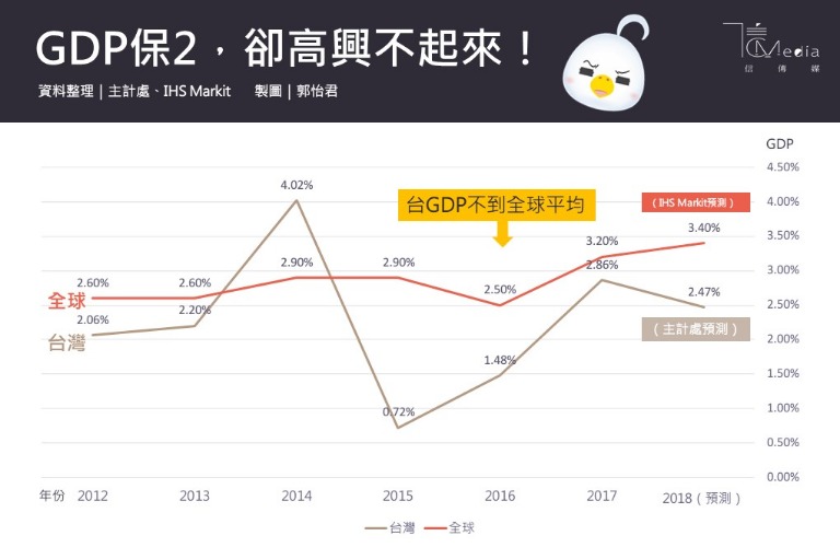 比較過後的數字才有意義,台經濟成長率低於全球平均值