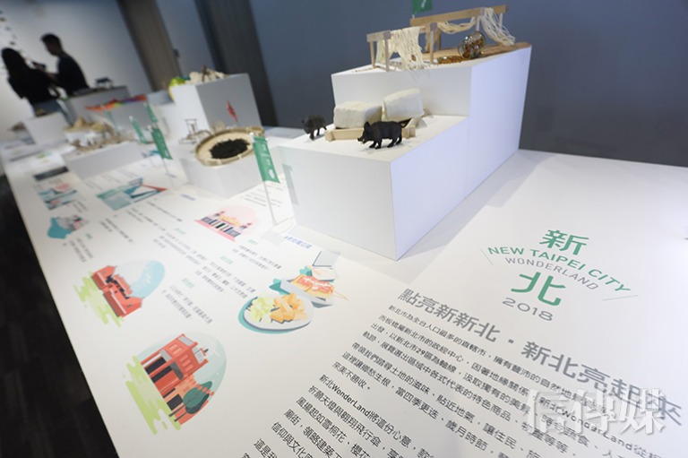 蘇貞昌則親自充當「導遊」為大家解說空間擺設創意與巧思,他說,新北市是環狀城市,因此地圖設計特別以等高線做出新北豐富多元的地景。