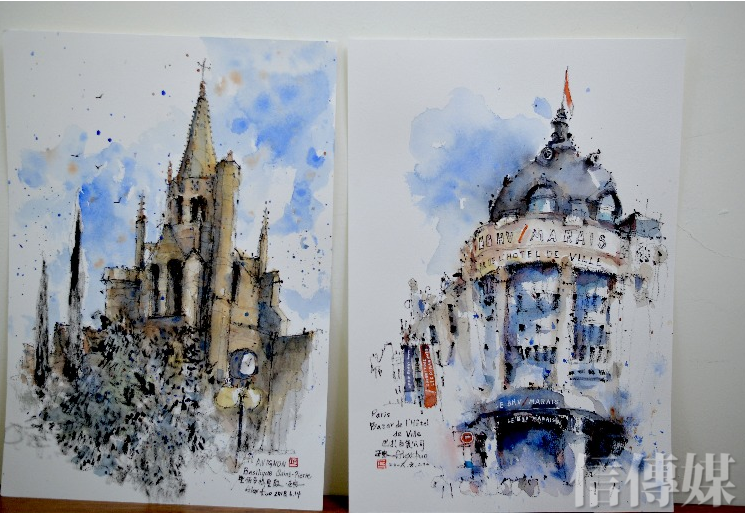 「速寫,就是快速地寫生,我常常在一個小時以內畫完,為的是抓住那片刻的光、空氣、色彩。」郭正宏說,通常速寫畫完成後會和當時速寫的物景合照一張照片,證明是當下完成速寫。