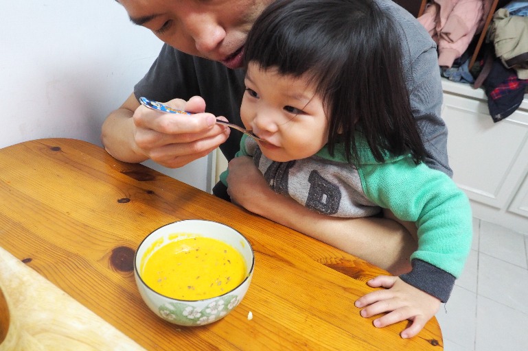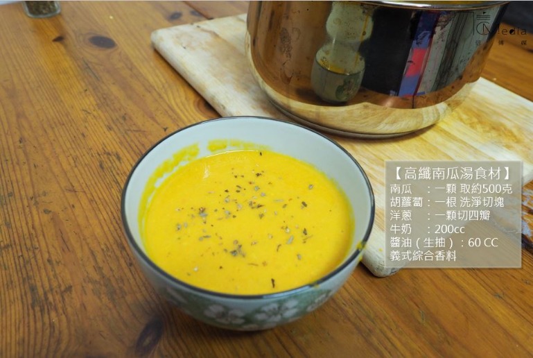 小記:南瓜湯如果沒吃完,要待其完全冷卻後再放入冰箱冷藏。如果一次做的量太多,務必冷凍保存,以免酸化。南瓜湯隔餐食用可隨個人喜好加入雞肉或海鮮,又是美味的一品。