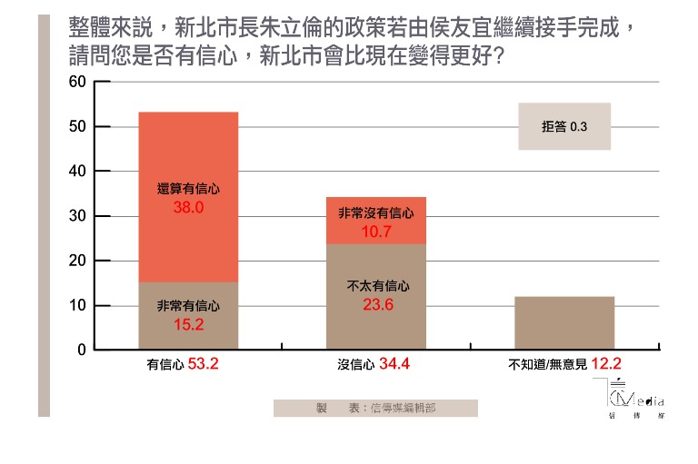 雖然這樣的策略,會讓侯陣營面臨媒體上有負面訊息的風險,也讓外界懷疑侯陣營的文宣反應與危機處理能力有待加強,但從最新民意來看,選民僅有27.3%對侯友宜的清廉產生質疑,有高達57%選擇相信侯友宜。