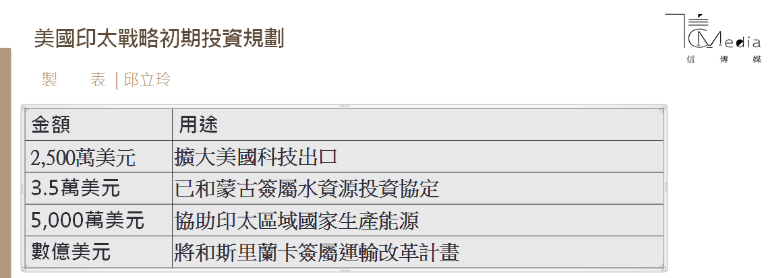 美國退出TPP後,初次提出「印太戰略」的投資額很少,和中國「一帶一路」放貸與投資總額1兆美元相比,有如九牛一毛,這意味,蓬佩奧講話的宣示意義大於實質意義。