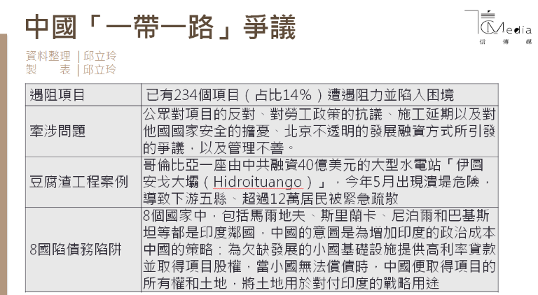 外界常將美國的「印太倡議」與中國的「一帶一路」相提並論,不過,近期中國一帶一路計畫開始遭到許多質疑。最近備受爭議的是,中國對「一帶一路」的中巴經濟走廊投入資金高達620億美元,巴基斯坦已向中國貸款了約50億美元(1500億台幣),讓巴基斯坦債台高築,財政赤字激增,巴國新政府上任後,會向國際貨幣基金(IMF)求援,美國對此警告,IMF不要金援巴國。