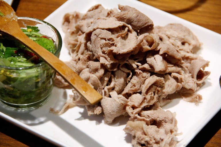 8.趁粉絲煲悶煮時,製作豬肉片醬汁:魚露1大匙、糖1大匙、蒜末、辣椒末、檸檬汁半顆、水2大匙、香菜末。