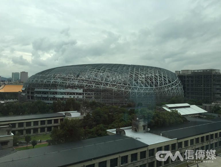 張善政位於台哥大基金會的辦公室,落地窗一眼望出去就是令現任台北市長柯文哲頭痛不已的「大巨蛋」。(攝影/張瀞文)