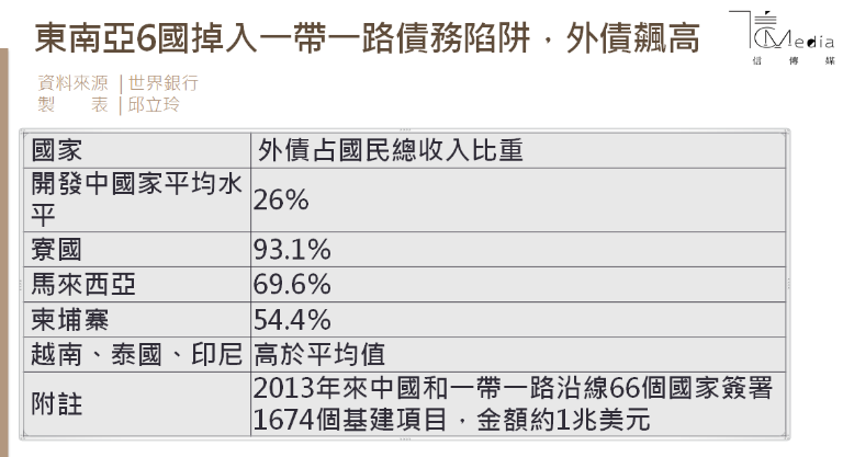 今年3月,華府智庫「全球發展中心」(Center for Global Development)發布的研究報告指出,「一帶一路」項目顯著增加眾多小國的債務,其中8個國家的風險尤為令人擔憂;這些國家分別是巴基斯坦、吉布提、馬爾地夫、寮國、蒙古國、黑山、塔吉克斯坦和吉爾吉斯。