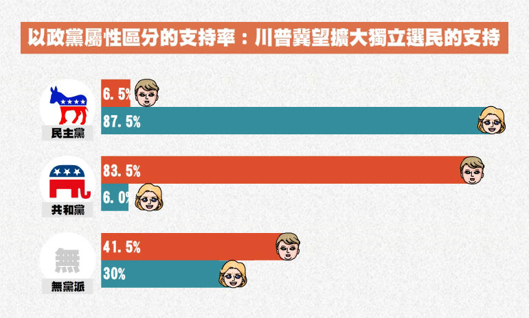 而在希拉蕊與川普的民調支持度仍舊不相上下之際,本周一雙方即將進行的本次總統大選首場公開辯論,便很可能會成為影響接下來民調走向的重要關鍵。根據華爾街日報所做的調查,約有34%的受訪選民認為,雙方在辯論會上的表現將會影響他們未來的投票決定,這一點對希拉蕊的主要支持群眾來說更是如此,包括有49%的拉丁裔選民、42%的非裔選民,以及39%的35歲以下選民都表示,這場辯論結果對他們至關重要,這無形中也讓希拉蕊背負著更多輸不得的壓力。