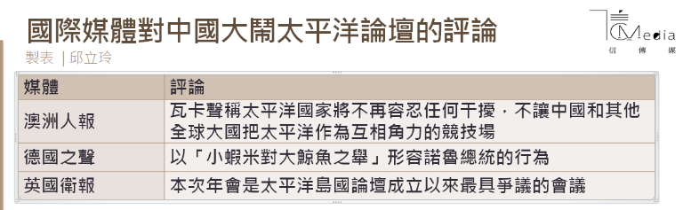 只是中國沒有妥協的跡象,外交部發言人華春瑩5日表示,諾魯作為主辦國,「違背國際慣例和論壇規定,上演了一齣拙劣的鬧劇」。