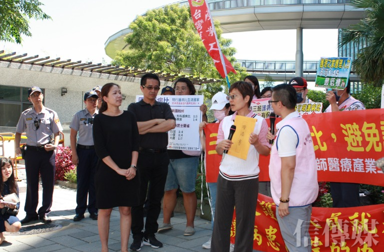 8月13日發生於衛福部台北醫院護理之家的大火事件,釀成39人輕重傷、13人死亡的悲劇。台灣護師醫療工會理事長陳玉鳳,昨(13日)帶領50名護理師至衛福部陳情抗議,希望衛福部醫事司重視「三班護病比」訂定入法,而非全日平均計算。