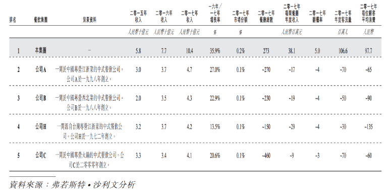 在招股書中,海底撈表示其為全球最大的中式餐飲公司,還表列出五大中式餐飲公司(以全球總收入計)中,根據交叉比對後發現前五大公司的第四、第五大分別為鼎泰豐(創立於1972年、總部在台灣)與呷哺呷哺(創立於2000年、總部設在中國的火鍋店)