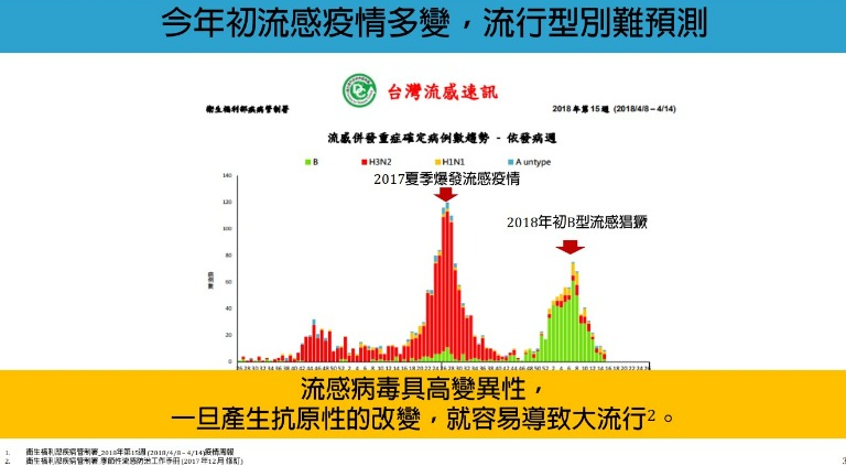 黃立民解釋,由於流感病毒非常容易產生變異,幾乎每年流行的病毒株都會稍有不同,原本施打的疫苗,對不同抗原型的病毒保護效果會減低,即使病毒未發生變異,疫苗成分相同,接種4至6個月後保護效果也有可能會下降,保護力一般不超過1年,因此建議每年還是要接種疫苗一次。