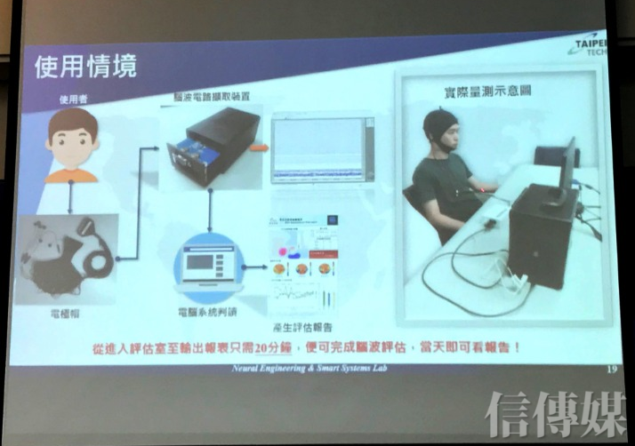 有鑑於此,劉益宏團隊從2013年開始做憂鬱症腦波輔助診斷,並與台大身心科醫師廖士程合作,也和林口長庚進行藥物篩檢、腦波、麻醉電療等研究實驗。他解釋,只要讓患者用腦波裝置測量2分鐘,馬上會出來一個報表可以給醫師看,他也希望透過此腦波裝置,協助醫師更精準的診斷及用藥。