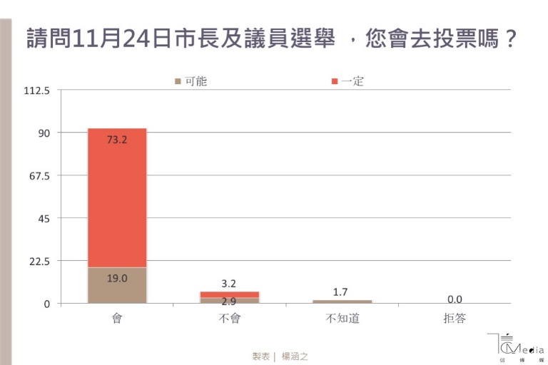 根據《信傳媒》民調結果顯示,會去投票的受訪者,高達92.2%,高於其他縣市,顯示高雄市是2018年選戰的超級大熱區,相較9月中旬的民調,增加1成,說明藍綠陣營在此交鋒,確實點燃選民的投票意願;然而,被燃起的高投票率,對韓國瑜或陳其邁誰較有利,有待觀察。