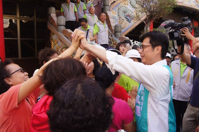 陳其邁的車隊掃街行程,以各地區廟宇串連起車隊掃街路徑,因為廟宇往往是地方鄉親聚集的地方,陳其邁競選車隊,早上從覆鼎金保安宮出發,途經本館龍池宮、寶珠溝褒忠義民廟參拜;下午從仁武出發,經仁武福清宮、八卦北極宮、赤山慈惠堂、灣內代天府,再到鳥松瑯環宮、保民宮、大樹北極殿,之後前進大社保元宮、青雲宮參拜,祈求選戰最後能勝出,高雄未來風調雨順。