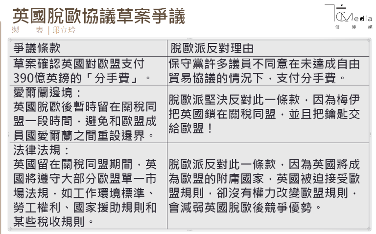 果然,這份脫歐草案15日立刻就在下議員遭到國會議員圍剿,一些保守黨議員已經針對首相梅伊準備提出不信任投票案。更麻煩的是,還有數位內閣要員對該協議不滿,紛紛請辭。