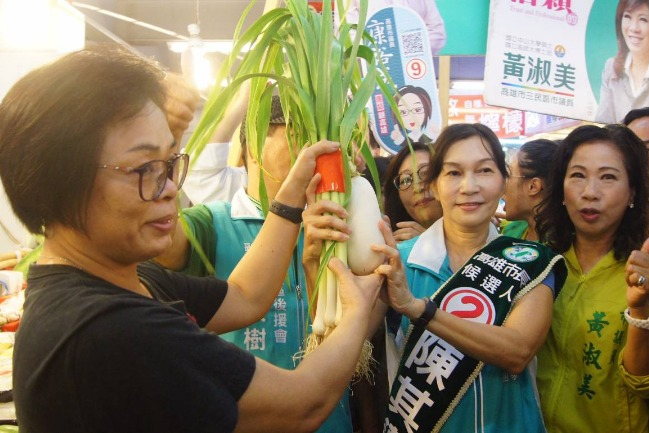 由於先前已有助選影片,加上前一晚的電視節目,吳虹這場拜票活動,更加深受在地市場攤家的歡迎,在陽明市場有人送上菜頭、青蔥,還有人特地送上甜點給吳虹。