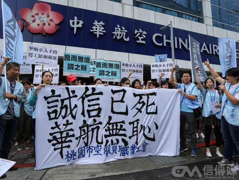 今年6月24日華航空服員經過投票後進行無預警罷工,最後在勞動部見證下,達成7項協議,至今3個多月,協約內容卻一一跳票。就算桃園市空服員職業工會已多次到桃市府、勞動部前抗議,華航卻毫無回應。