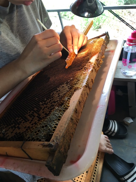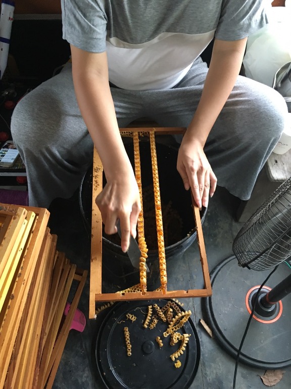 去臘,把王杯上的蠟割掉,方便採集蜂王乳。(圖片來源/徐嘉宏提供)