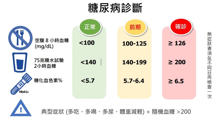 馬文雅舉例,美國有做一個糖尿病預防研究,把有糖尿病前期但還沒有得糖尿病的人分成3組,第1組不管他、第2組開始做飲食控制和運動,預計減7%的體重,第3組就是吃藥,結果第1組每年6-22%會變糖尿病,15年後60%會變糖尿病。「USPSTF(美國的預防服務工作小組)建議,40-70歲過重或肥胖的無症狀成人,都應篩檢糖尿病。」台灣糖尿病學會指引2018版也提到,針對無症狀成人的糖尿病篩檢建議,利用國民健康署所提供的成人健康檢查,40歲以上民眾每3年應篩檢1次、65歲以上民眾每年篩檢1次。