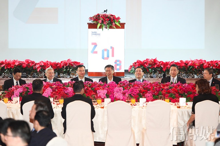 台北市長柯文哲與上海市副市長周波先後致詞時,不約而同提及「兩岸一家親」論述。