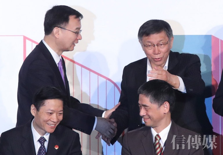 在論壇登場前,19日晚間先在圓山飯店舉行歡迎晚宴,期間擔任東道主的柯文哲全場面帶笑容,與前幾天蔡柯會整場臭臉的他完全判若兩人。