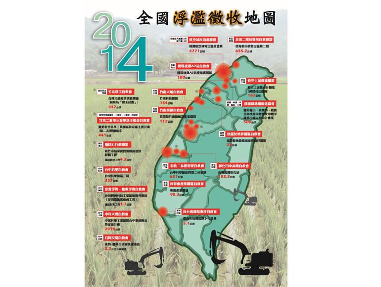 全國浮濫徵收地圖,點擊可看大圖。(圖片來源/台灣農村陣線)