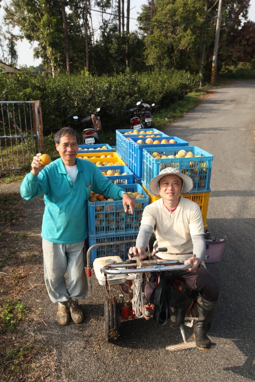 台灣可謂橘子的寶島,柑橘果樹分佈廣、產量高、產值大。種植最多為椪柑、茂谷柑、桶柑(草山柑)與海梨柑,形狀大小不同,酸甜比及口感各不相同。近年來,陽明山特有的草山柑栽培面積減少,即將消失。為讓民眾重溫古早風味,中興大學與陽明山農民合作復育草山柑,保存在地獨特品種。過年前,橘子樹上果實累累,即將採收,我們來到柑橘主要產區—台中東勢黃草崗,拜訪種柑橘第四代的趙令龍與兒子趙士宇。一○一年已經七十一歲的趙令龍,在雨中撐傘迎接我們,精神抖擻、腳步輕快,絲毫不見傴僂模樣。