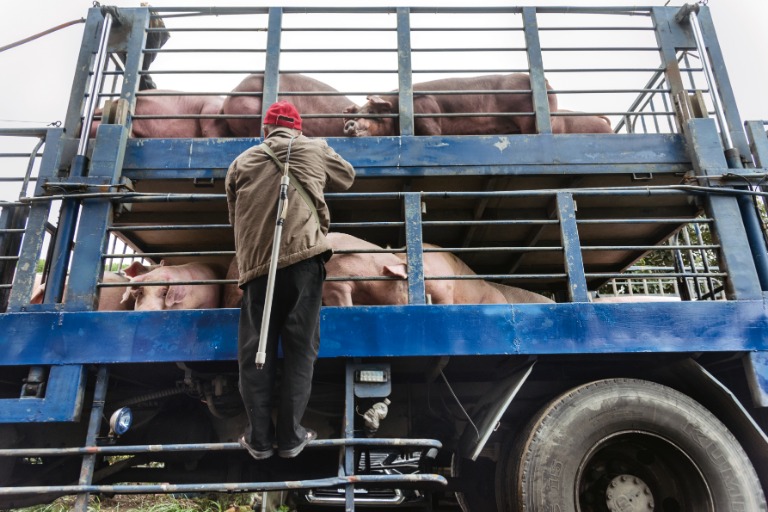 另一個經常被忽略的風險是運禽車、運豬車。位在苗栗縣竹南鎮的暉煌種豬畜牧場,也是頗有名氣的種豬場,儘管每輛運豬車在接近暉煌種豬畜牧場前就必須由工作人員消毒,但場主陳鈞銘仍不讓外來車直接進到場內,堅持用自家小貨車,將豬送到運豬車上。這天他賣出了80頭豬,親自開著車來回載運5趟。