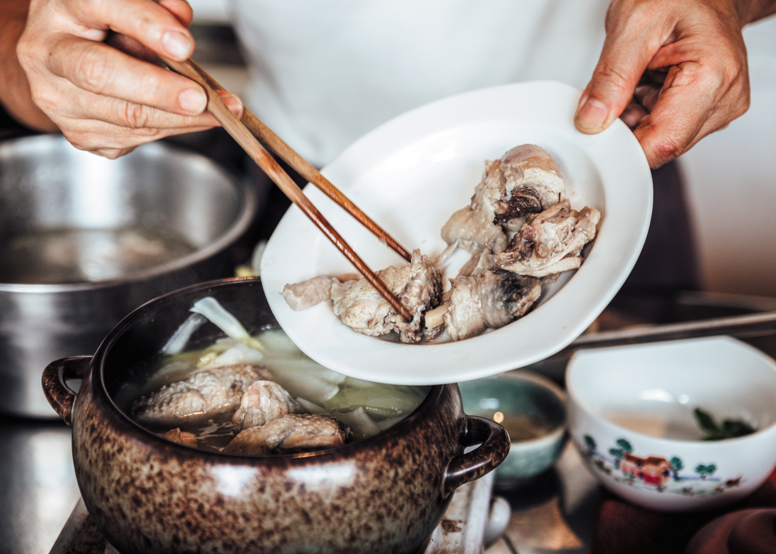 張維新為我們煮的這道洋蔥雞湯,其實是興之所至,包含了他自己的喜好。他提及肉品可依喜好與飲食習慣置換,重點是在久熬的湯品中洋蔥不要煮至軟爛,在喝湯的同時也能保有洋蔥的甜脆口感。