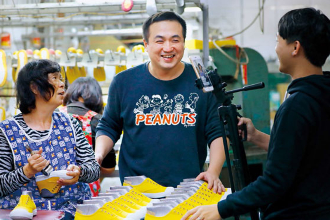 他,是數10萬粉絲口中的「楠哥」,但關掉直播後的另一個身分,是富發牌古著鞋總經理呂紹楠。採訪當天,他開口時嗓音沙啞,原來是前一晚凌晨才做完4小時清倉直播,幾乎把整間迪士尼專賣店給搬空。一個傳產製鞋出身的老闆,為何跑去當網紅?這個問題,他答得不假思索:「因為環境需要啊。」