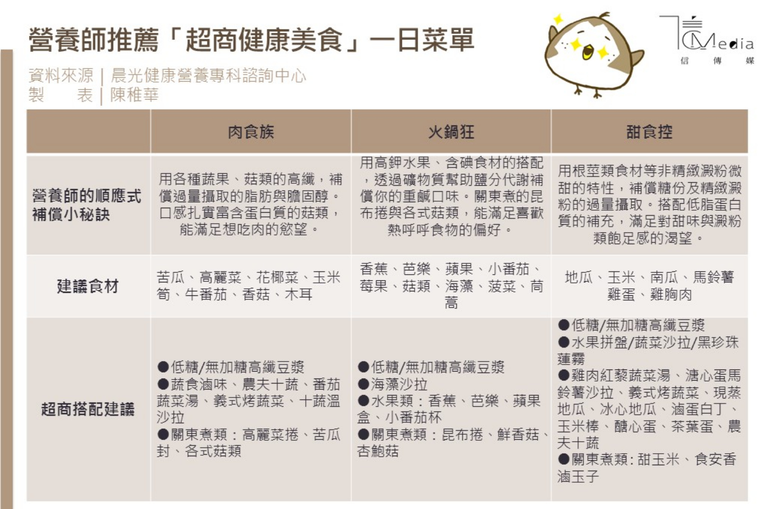 不過開工後又開始迅速回到忙碌模式,上班族要如何吃得健康又能瘦?趙函穎推出食譜搭配術,讓忙碌上班族在超商也能簡單吃出美味: