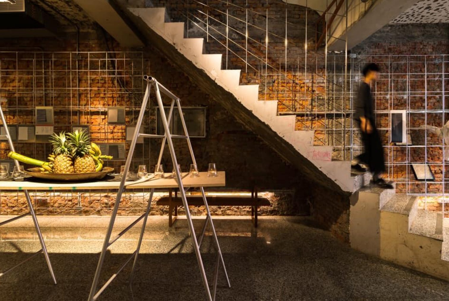 陳瑞惠心裡深處有一份執念,如果時間可以回到從前,希望可以停留在當時,那裡有最美的回憶。因此規劃團隊以「遺跡」為概念,拆除所有不需要的裝飾,讓裸露的紅磚牆展現當年最原生材質的美,細鐵件的框架結構,搭配紙櫃的線條,創造放射線的視覺效果,讓空間更有力量感與縱深感。