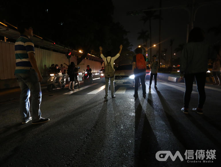 稍晚抗議人士佔據中山南濟南路口造成交通堵塞。