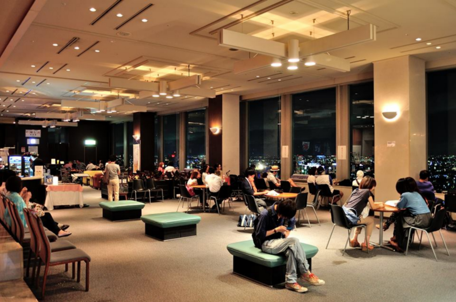 Carrot Tower落成於1996年,並非購物中心而只是複合性商辦大樓,所以不會有購物觀光人潮,遊客可以自由直接搭電梯上26樓的無料展望廳去看夜景,雖然展望樓層有餐廳與咖啡廳,但裡面規劃了一大片非用餐者可利用的免費座位,更棒的是,我三度前往,每次都可以輕易地找到窗邊的椅子,盡情又輕鬆地眺望塔外的東京西半邊的風景。