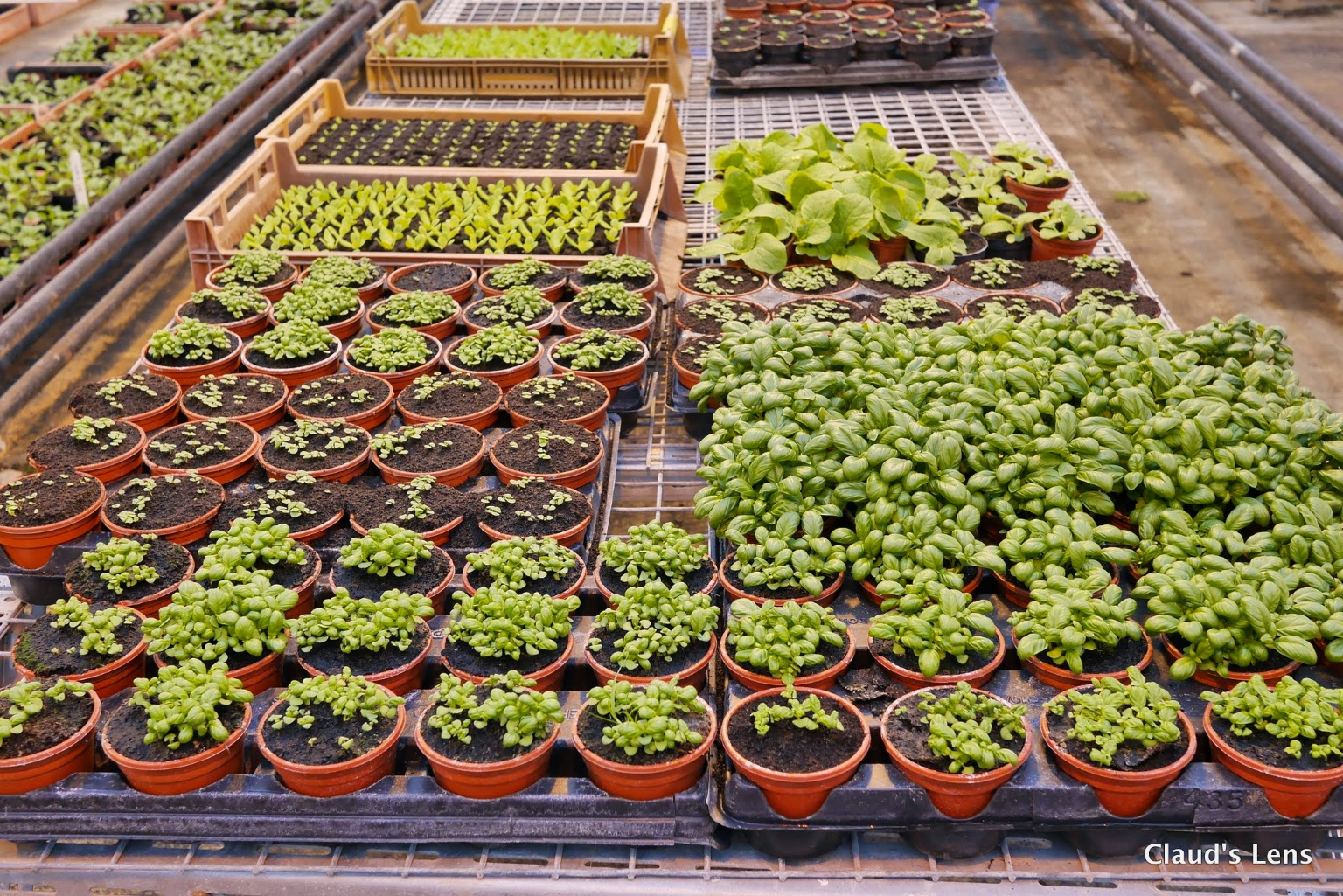 接著史提夫先生請農場導覽員帶我們去實地參觀溫室與研究中心,大家頂著寒風辛苦地走出戶外,但一進到溫室就開始脫下厚重的衣物,因為室內平均溫度在十八至二十度,育苗中心裡有型型色色的蔬菜,研究員會紀錄菜苗在溫室中的成長狀況,並測試在不同條件下,蔬菜能承受的環境衝擊度。