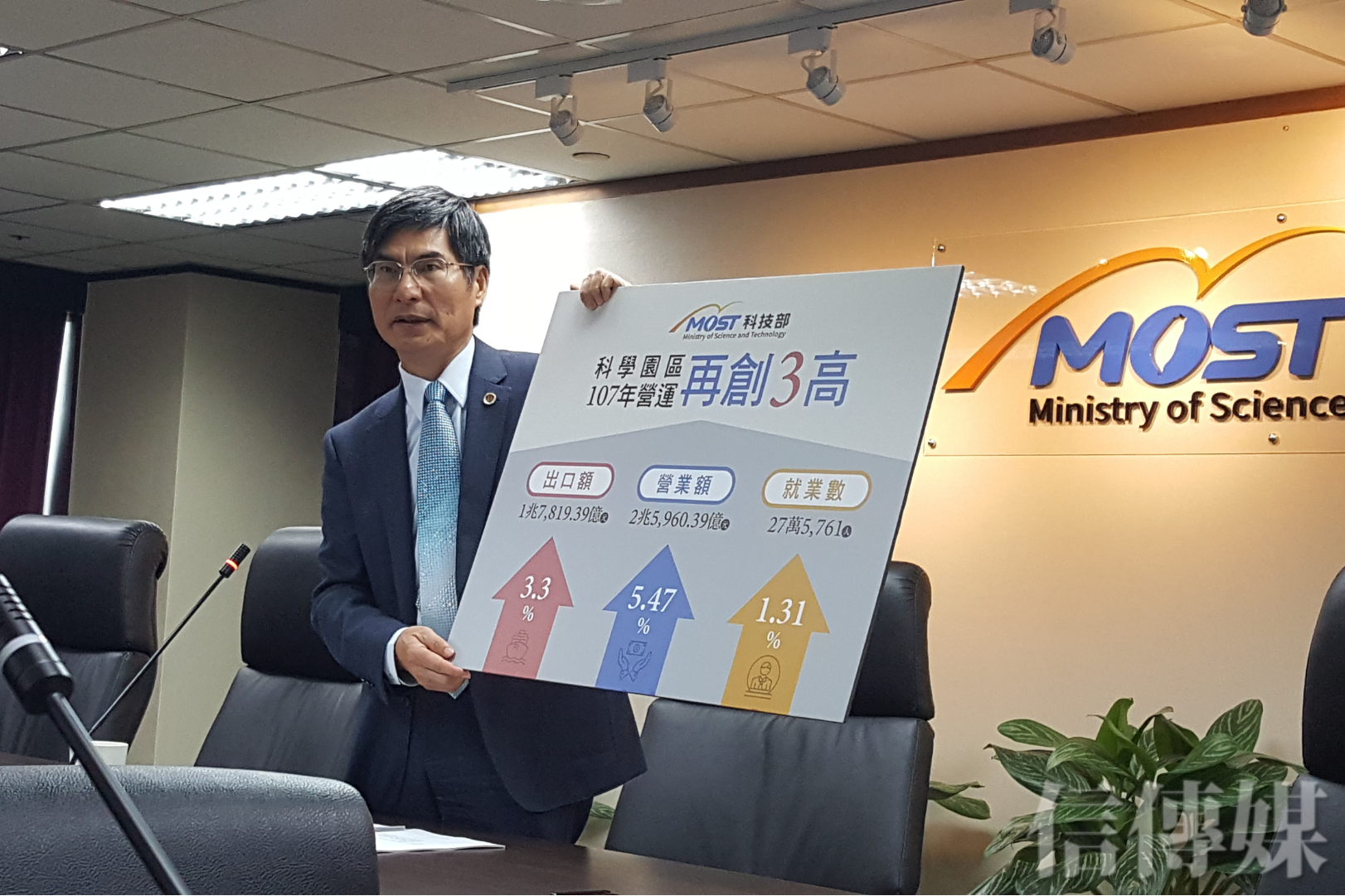 美中貿易戰下,國內三大科學園區依舊穩健,2018年營業額來到2兆5960億元,與出口額、就業人數同步創下歷史新高。對此,科技部長陳良基指出,主要是積體電路呈現二位數成長,「去年精密機械成長力有稍微減緩一點,但我們多了一塊……電腦及周邊,我猜這個跟我們現在很多重要產品從台灣出去,再回來台灣生產是有點關係,所以成長力比去年高很多。」