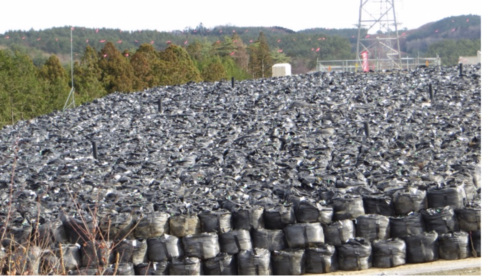 我們也走訪了永久核廢料貯存場,大批的核廢料由田野、各地轉運到雙葉郡富岡町的永久低階核廢料貯存場,每包核廢料都打包好,從當地與外地運過來,每天上千輛卡車運送這些核廢料。這些核廢料是8,000-100,000貝克的核廢料。