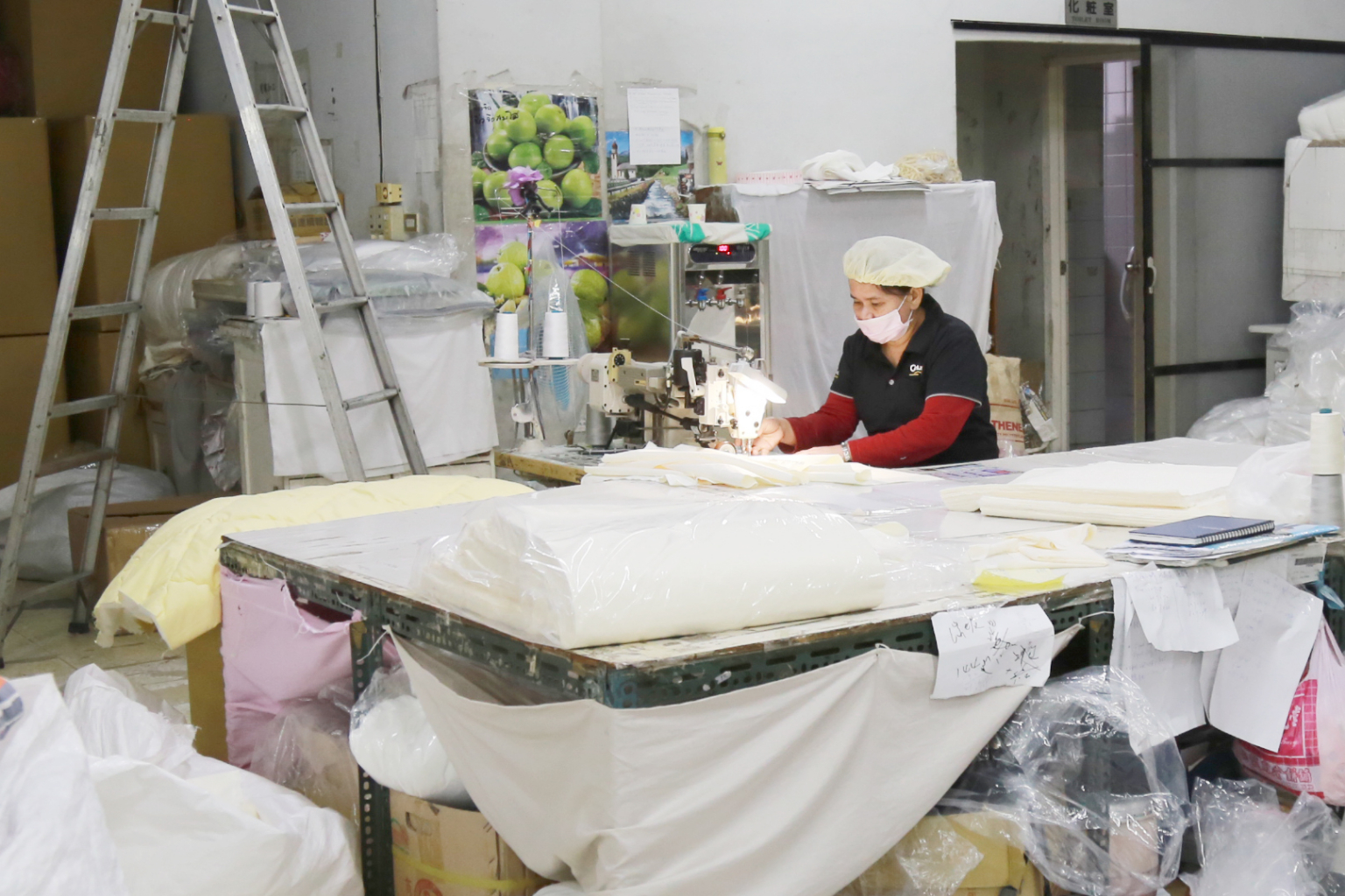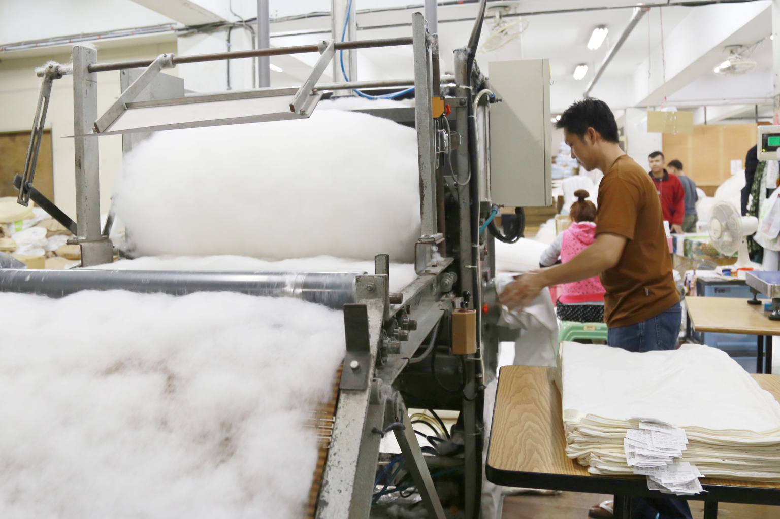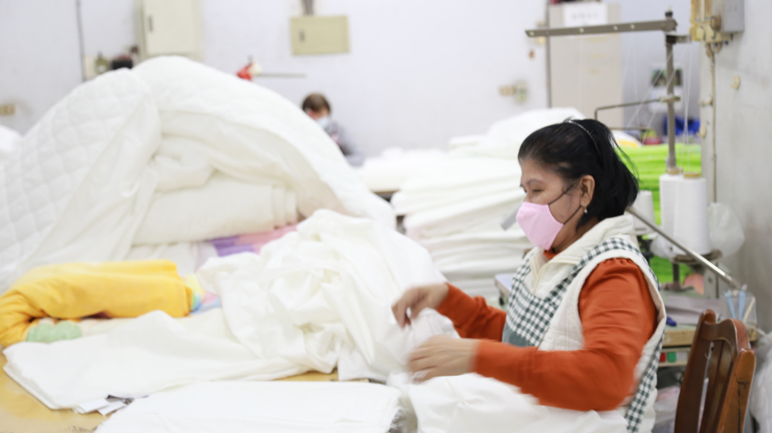 目前隆興主要為一家知名美商寢具品牌代工,訂單量就占了全廠近半產能,原料來自德國,一床冬被要價8、9千元,夏被也要近3,000元。