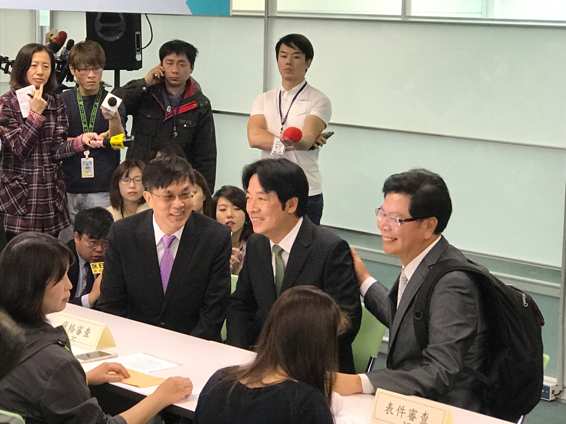 賴清德一早先委由他人代為領表。他的老師、前成大醫院院長陳志鴻則則先來到黨中央表達支持。陳志鴻重提賴清德棄醫從政時,他給予的期許,「要成為政治上的清流」。