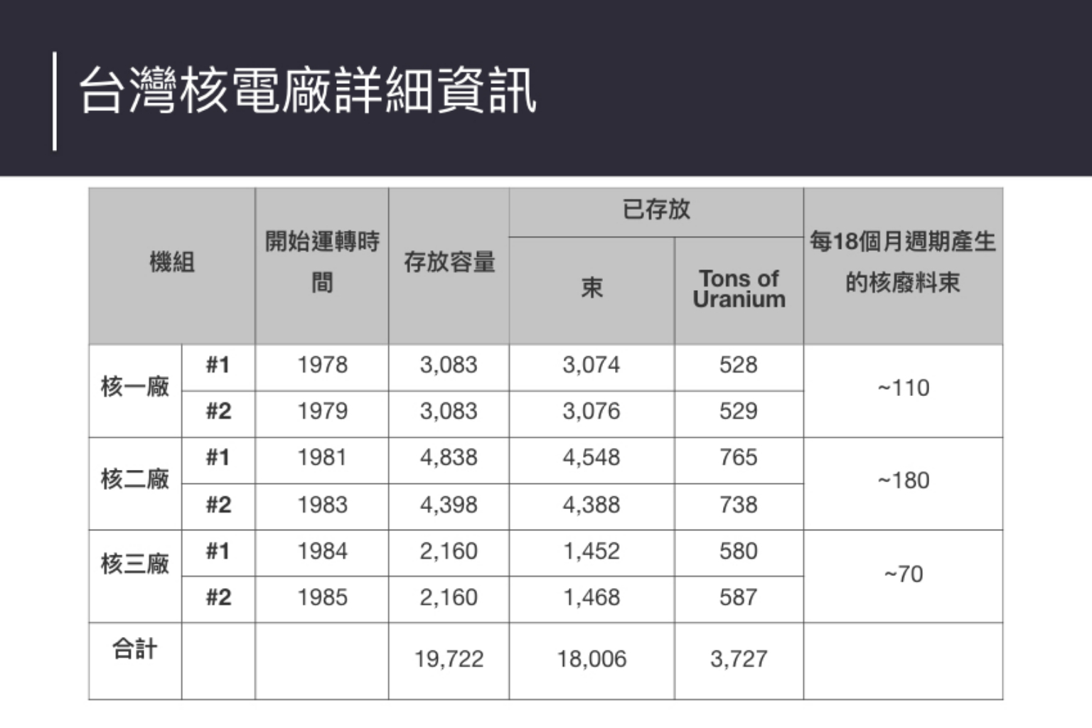 然而政府部門和台電對這足以滅台的問題漫不經心,根本未見積極的作為處置這麼世界級的危機,而擁核者成天討論要延役這些老朽塞滿核廢料大便的核電廠,或是念念不忘重啟30年都蓋不好的核四。