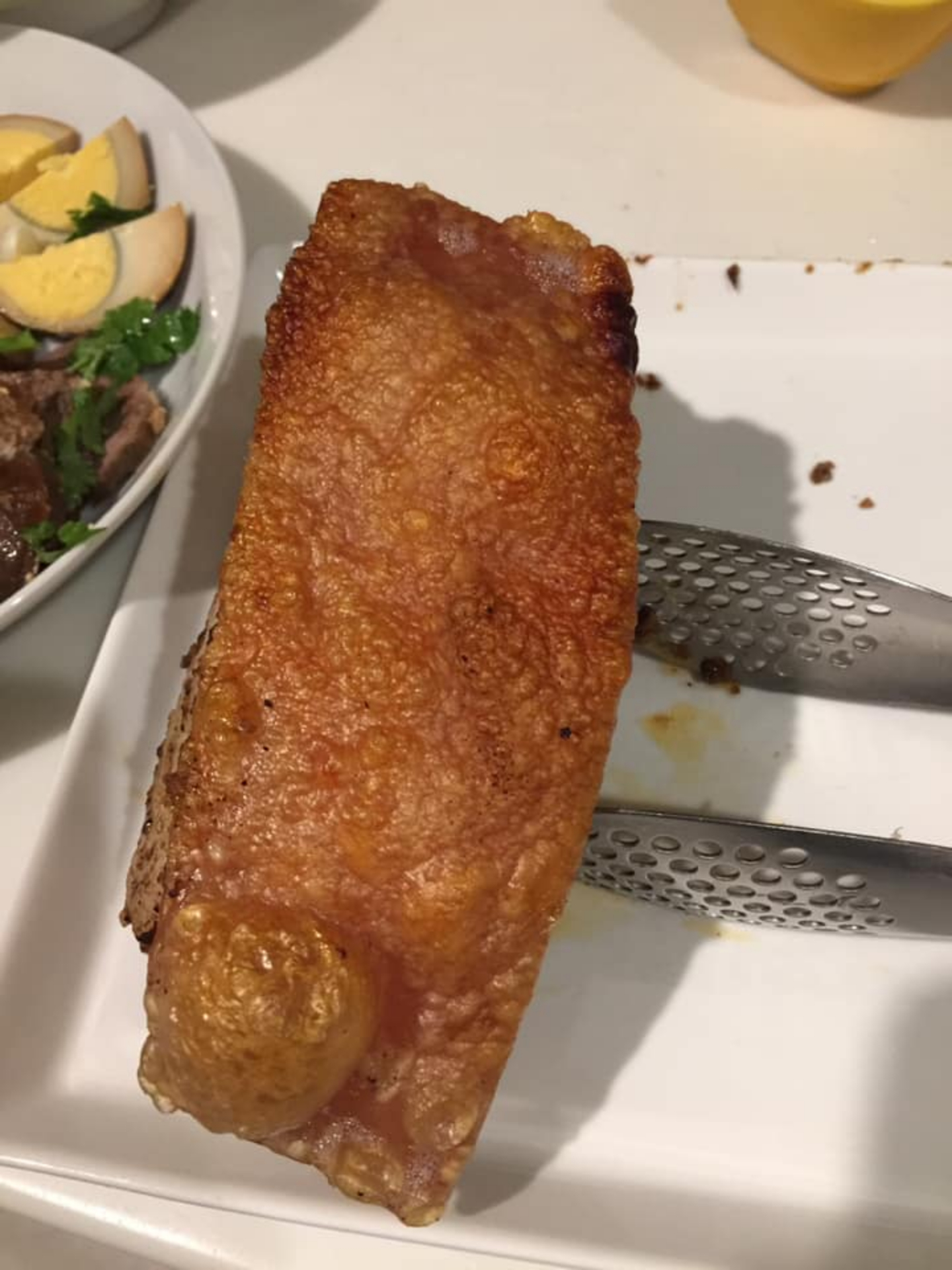 第二是皮要風乾風乾再風乾。肉不密封,直接放入冰箱,就可以達到風乾的效果。當皮沒有水份,烤起來就會酥脆與爆皮。