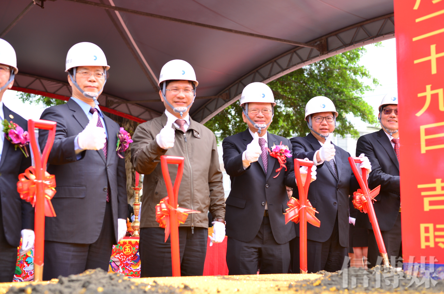 29日適逢黃道吉日,桃園地區不少工地開工,也讓鄭文燦以趕場的節奏來到楊梅區的中華電信電信研究所,恰好與林佳龍前後一起到,讓鄭優與一級主管趕緊到大門迎接。